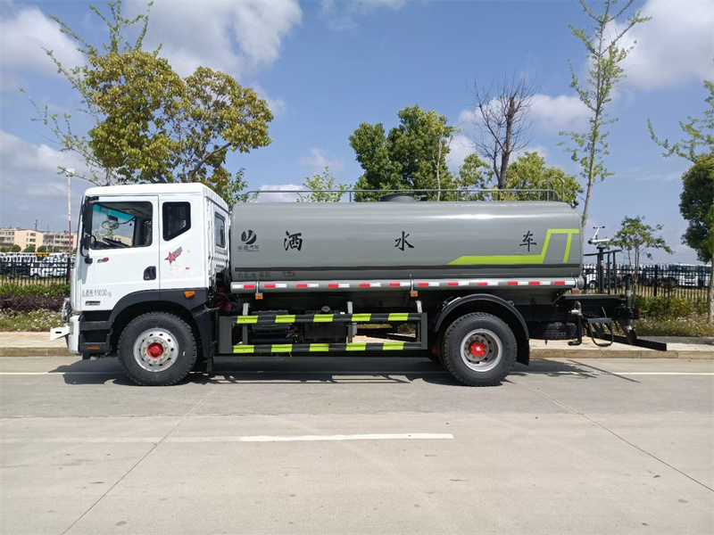 東風(fēng)12方灑水車標(biāo)配前噴(鴨嘴)、后沖、后灑、側(cè)噴、后置式工作 平臺,平臺上配置綠化水炮(可 360°旋轉(zhuǎn),既可以調(diào)成柱狀,也可 以調(diào)成霧狀,更可以調(diào)成直沖狀、大雨、中雨、小雨、毛毛雨),配 備優(yōu)質(zhì)大功率專用灑水泵(可自吸自排,可從河里或池塘抽水到罐體), 取力器,雜物過濾網(wǎng),消防接口,自流球閥系統(tǒng)、取力器、球閥、濾網(wǎng) 均為國家標(biāo)準(zhǔn)產(chǎn)品