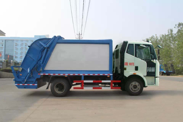 6、解放J6壓縮式垃圾車可選配后掛桶翻轉機構或垃圾斗翻轉機構,作業自動化,垃圾收集方式簡便、高效,還可按用戶要求改裝成各專用用途垃圾車。