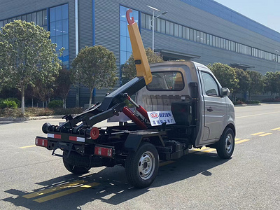 長(zhǎng)安底盤改勾臂式垃圾車容積為2~3方,標(biāo)配邊三底四的垃圾箱一個(gè),采用江蘇液壓油缸液壓泵,國(guó)產(chǎn)多路閥。