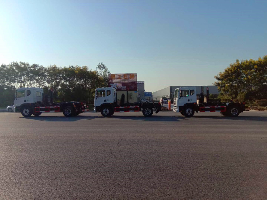 5100ZYS、5101SYS、5060SYS型垃圾車采用舉箱卸料:其中5100ZYS、5101SYS型垃圾車由兩只油缸直接舉升車箱進行卸料; 5060SYS型垃圾車由一只油缸作用于三角放大臂,通過三角放大臂舉升車箱進行卸料。
