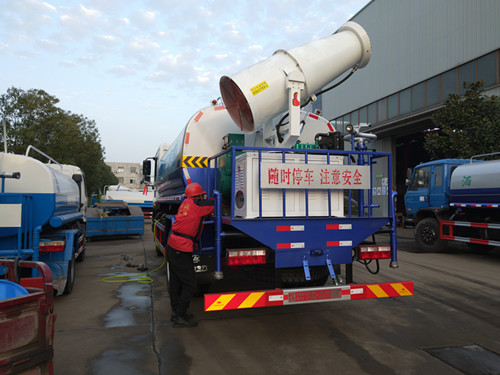 灑水車加裝噴霧機,灑水車又稱為綠化噴灑車、水罐車、由汽車底盤、進出水系統和罐體構成。適合于各種路面沖洗,樹木、綠化帶、草坪綠化,道路、廠礦企業施工建設,高空建筑沖洗。具有灑水、壓塵、高低位噴灑,農藥噴灑、護欄沖洗等功能。