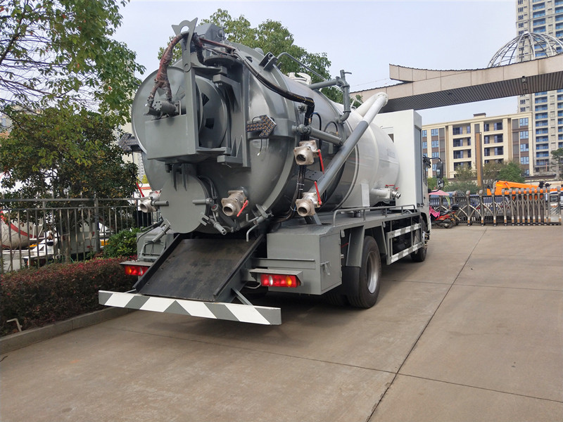 清洗罐6立方,污水罐8立方,配80米直徑19清洗管,配10個(gè)不同規(guī)格的高壓噴頭,尾部左側(cè)后置式清洗卷盤(pán),吸污部分安排偉業(yè)牌大功率10T真空吸污泵,帶10米吸污管一根,罐體右后側(cè)安裝150排污閥,側(cè)抽上料口采用直徑115加厚型無(wú)縫管,(清水罐和污罐)頂部安裝三爪干灰蓋,加大工具箱,水污互通。