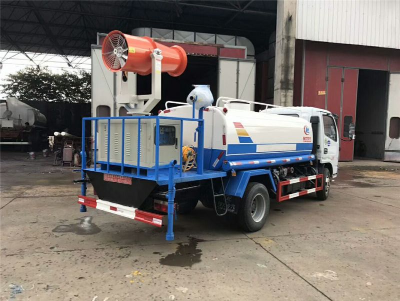 東風多利卡5噸灑水車配備國內質量評比的杭州威龍大功率灑水泵,可泵進泵出;帶消防接頭可從消防栓處取水,也可利用車載泵在河流或池塘中取水。灑水車配備前沖、后灑、側噴、高壓水炮及后工作平臺。自吸高度:≤7m,灑水寬度:≥14m,水炮可調節成柱狀,射程≥28m;也可調節成霧狀,射程≥5m。