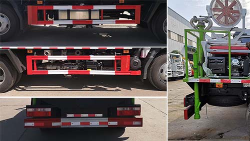 該車專用裝置為抑塵霧炮,用于礦場,露天堆場及爆破現(xiàn)場等的噴霧抑塵.此車僅采用 3365軸距.側(cè)防護(hù)及后下部防護(hù)裝置均采用Q235材質(zhì),均采用焊接連接,后下部防護(hù)尺寸: 50×150(mm),離地面高度380mm;ABS系統(tǒng)型號/廠家為VIE ABS-Ⅱ/浙江萬安科技 股份有限公司.隨底盤選裝駕駛室.,選裝箱體外觀樣式 |