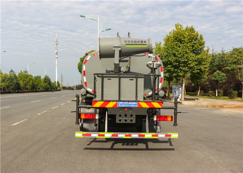 灑水車整車及外形尺寸嚴格按照國家機動車公告制作而成;裝配大功率專用灑水泵,前沖、后灑、側噴、后平臺帶綠化灑水炮,灑水炮可全方位旋轉,可連續調成直沖狀、大雨、小雨、毛毛雨;配消防接口,自流閥,濾網,帶自吸自排功能。