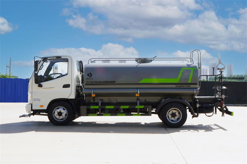 福田奧鈴5方灑水車產品標配前噴(鴨嘴)、后沖、后灑、側噴、后置式工作 平臺,平臺上配置綠化水炮(可 360°旋轉,既可以調成柱狀,也可 以調成霧狀,更可以調成直沖狀、大雨、中雨、小雨、毛毛雨),配 備優質大功率專用灑水泵(可自吸自排,可從河里或池塘抽水到罐體), 取力器,雜物過濾網,消防接口,自流球閥系統、取力器、球閥、濾網 均為國家標準產品