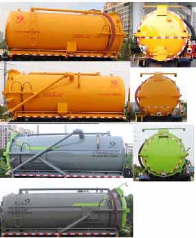 吸污車該車主要用于下水道系統的清理和疏通工作;主要裝置為罐體及清洗吸污裝置總成;罐體尺寸為(總長×直徑)(mm):5650×2000(前部含封頭長2550mm為清水罐,后部含封頭長3100mm為污水罐);污水罐總容量:7.9立方米;有效容積:7.52立方米;介質:液態污物,清水罐總容量:6.32立方米,有效容積:6.02立方米,介質:水;兩罐獨立,且不能同時滿載,清洗功能時用清水罐,吸污功能時用污水罐,兩罐不能同時使用.側、后防護材料均為:Q235碳鋼,連接方式均為:螺栓連接,后部防護截面尺寸(mm):120×60,后部防護離地高度(mm):470;卸料方式為舉升后卸式,ABS系統型號:ABS-VI.E;生產企業:廣州瑞立科密汽車電子股份有限公司.ABS系統型號:ABS-E;生產企業:威伯科汽車控制系統(中國)有限公司,ABS系統型號:3550D-1010;生產企業:東科克諾爾商用車制動系統(十堰)有限公司.采用4800mm軸距.選裝左側樣式;隨底盤選裝限速裝置,限速90km/h.選裝尿素罐位置,選裝電瓶位置。選裝罐體頂部無護欄裝置,選裝側面無罐體加強筋樣式,選裝后部吸污口樣式。
