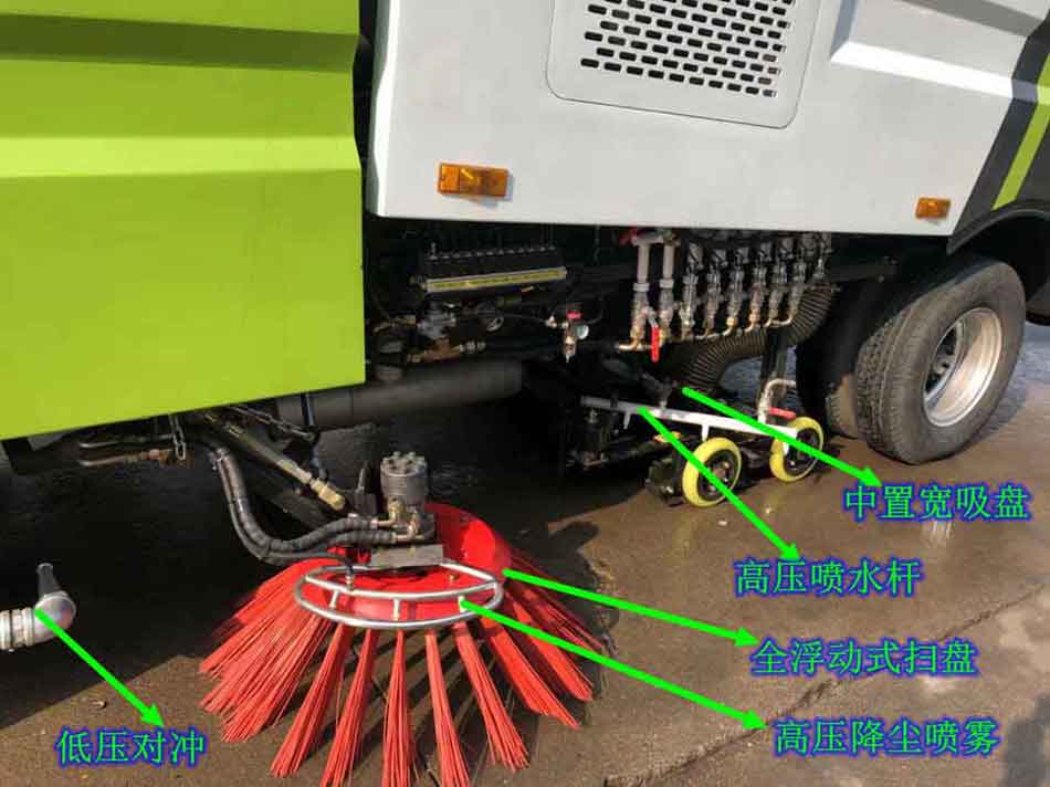 東風(fēng)D9洗掃車上裝配置:帶不銹鋼箱體,容積為9立方,帶2個(gè)中置掃盤,康明斯170馬力副發(fā)動(dòng)機(jī);意大利馬達(dá);德國高壓水泵(前沖/側(cè)噴/中噴/后噴霧/沖洗水槍/垃圾箱自潔裝置);萬向高壓路沿清洗噴頭,威龍低壓泵(前沖);不銹鋼垃圾箱;不銹鋼管高壓管路;德國控制器;韓國控制箱;PLC一鍵控制;尾部LED箭頭燈;機(jī)油、垃圾箱、水箱均帶防溢低水位報(bào)警裝置;倒車及洗掃狀態(tài)室內(nèi)監(jiān)視器。18m高壓沖洗卷盤。清掃寬度3.5m;清洗壓力10MPa;吸入粒度φ110mm。