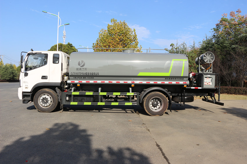 霧炮灑水車性能簡介:吸程≧7米,灑水寬度≧14-16米,射程≧25-40米,引水時間<5min,流量60m3/h。前沖(噴)、后灑、帶側噴(花灑)、帶后工作平臺、平臺上安裝綠化灑水高炮(炮噴射形狀可調節:直沖、大雨、中雨、毛毛雨、霧狀、可連續調節,360°旋轉),配消防接口,自流閥,濾網,帶自吸自排功能。
