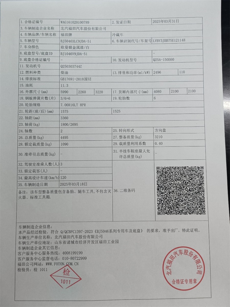 福田領(lǐng)航M5-全柴150馬力冷藏車