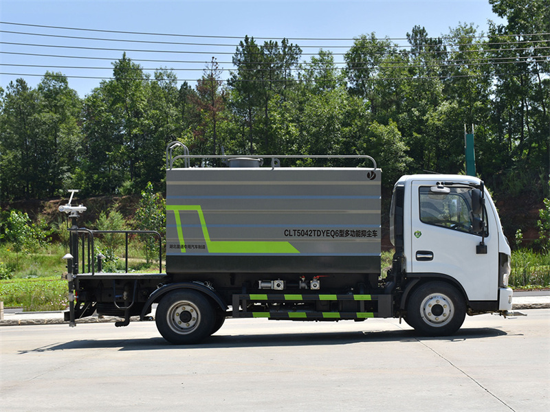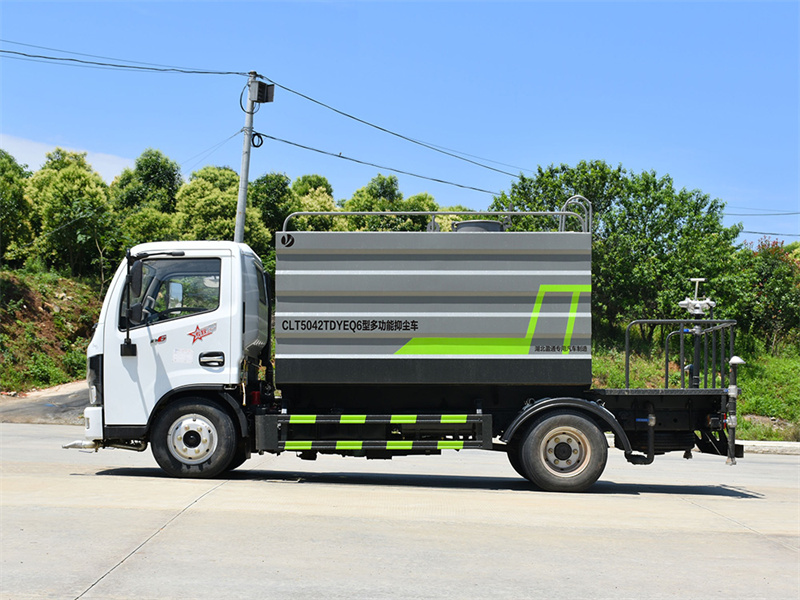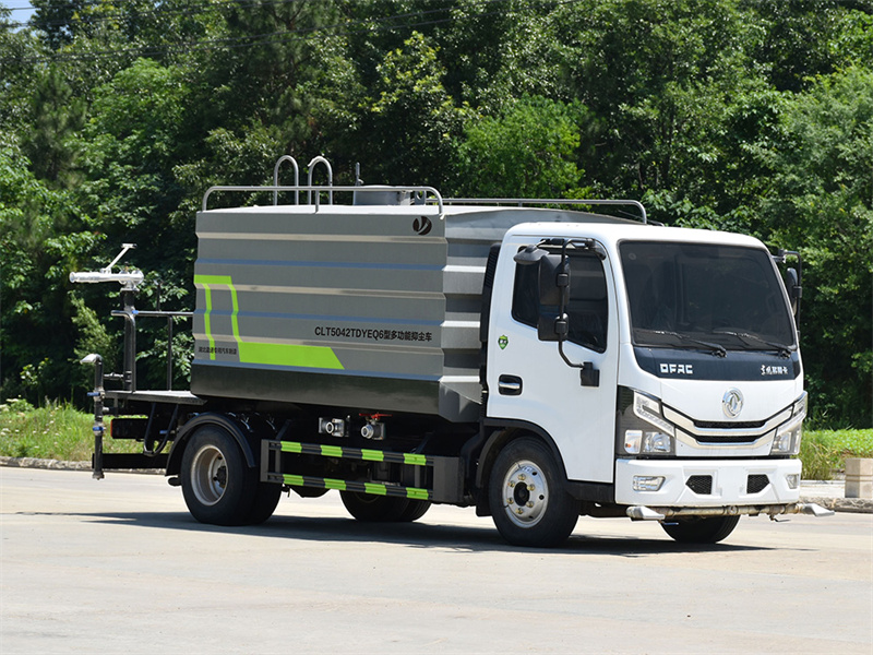 東風(fēng)7方藍(lán)牌灑水車產(chǎn)品簡述:縱昂牌 CLT5042TDYEQ6 型多功能抑塵車標(biāo)配前噴(鴨嘴)、后對 沖、后灑、側(cè)噴、后置式工作平臺,平臺上配置綠化水炮可 360 °旋轉(zhuǎn),既可 以調(diào)成柱狀,也可以調(diào)成霧狀),配備優(yōu)質(zhì)大功率專用灑水泵(可自吸自排, 可從河里或池塘抽水到罐體),取力器,雜物過濾網(wǎng),消防接口,自流球閥系統(tǒng)、 取力器、球閥、濾網(wǎng)均為國家標(biāo)準(zhǔn)產(chǎn)品,主管道加粗,法蘭墊、法蘭盤加厚,大通徑球閥。整體具備性能優(yōu)良安全可靠、效率高、流量大、維修方便等特點(diǎn)