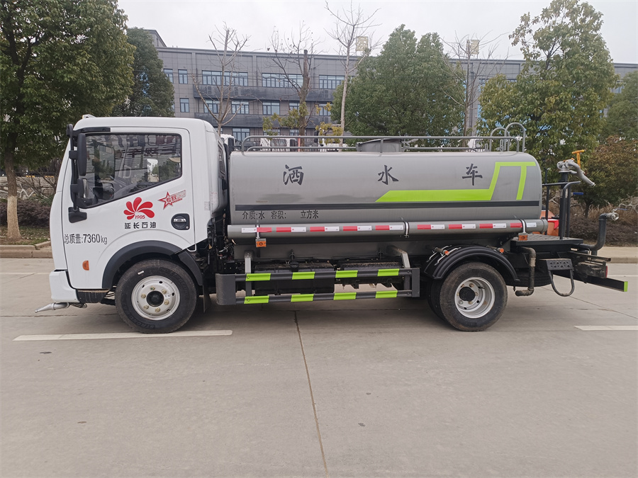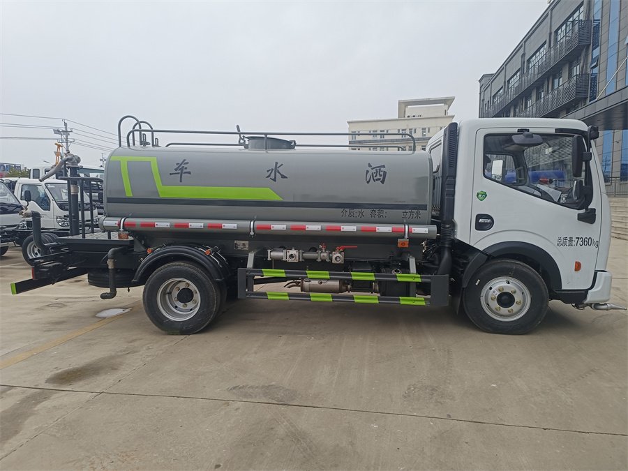 灑水車標配前噴 (鴨嘴) 、后沖、后灑、側噴、后置式工作 平臺,平臺上配置綠化水炮 (可 360°旋轉,既可以調成柱狀,也可 以調成霧狀,更可以調成直沖狀、大雨、中雨、小雨、毛毛雨) ,配 備優(yōu)質大功率專用灑水泵(可自吸自排,可從河里或池塘抽水到罐體), 取力器,雜物過濾網(wǎng),消防接口, 自流球閥系統(tǒng)、取力器、球閥、濾網(wǎng) 均為國家標準產(chǎn)品,主管道加粗,法蘭墊、法蘭盤加厚,大通徑球閥。 整體具備性能優(yōu)良安全可靠、效率高、流量大、維修方便等特點