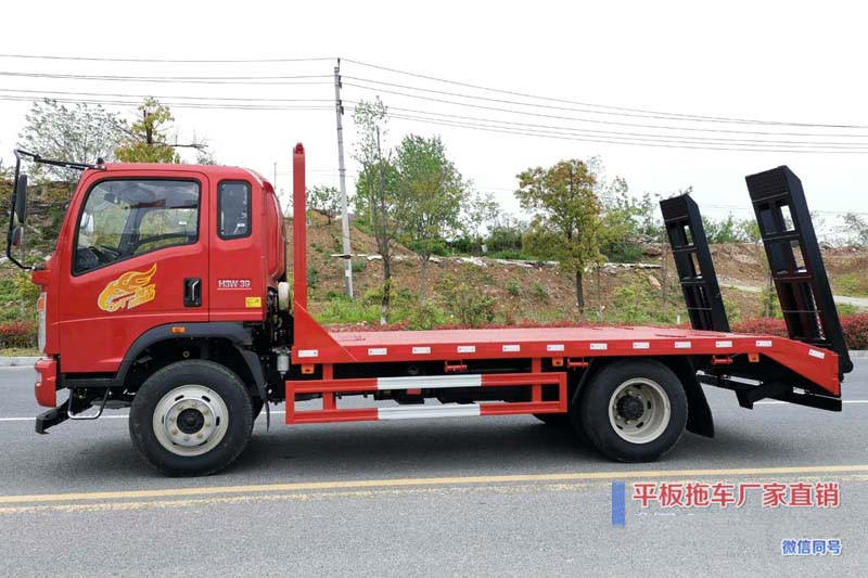 重汽豪曼單橋挖機(jī)平板拖車-重汽挖機(jī)平板拖車廠家直銷-湖北程力