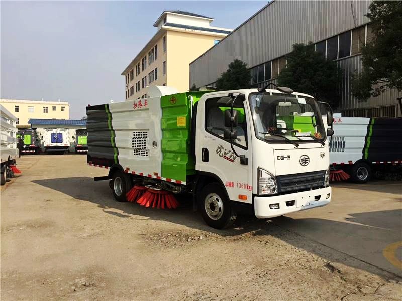 解放虎VN掃路車,水箱容積1.5方,積塵箱容積4方,江鈴78馬力副發動機,免維護自分離式離合器,免維護風機,不銹鋼水箱,不銹鋼垃圾箱,尾部LED箭頭燈。解放虎VN駕駛室,軸距3300,選裝全柴95或濰柴揚動95/110馬力發動機,5檔變速箱,130沖焊后橋,7.00R16鋼絲胎