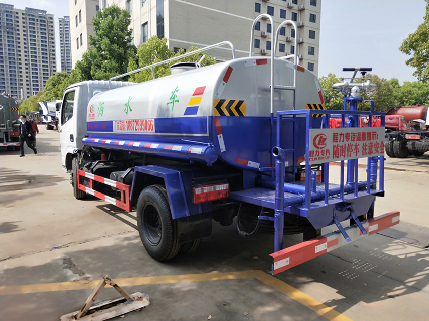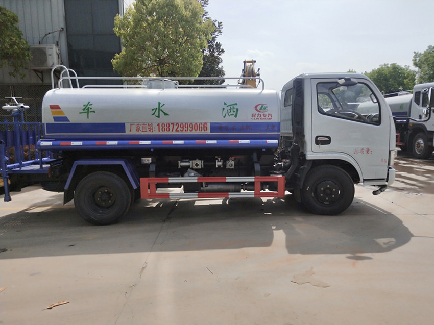 新款5噸灑水車采用東風(fēng)多利卡底盤,白色可前翻駕駛室,朝柴102馬力國(guó)五發(fā)動(dòng)機(jī),5檔變速箱,軸距3308mm,1.8噸前橋,3.5噸后橋