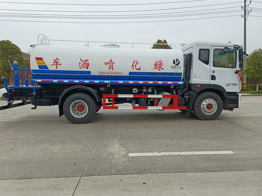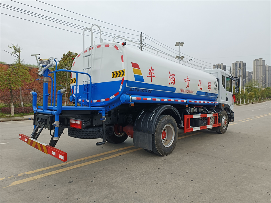 產(chǎn)品標配前噴(鴨嘴)、后沖、后灑、側(cè)噴、后置式工作 平臺,平臺上配置綠化水炮(可 360°旋轉(zhuǎn),既可以調(diào)成柱狀,也可 以調(diào)成霧狀,更可以調(diào)成直沖狀、大雨、中雨、小雨、毛毛雨),配 備優(yōu)質(zhì)大功率專用灑水泵(可自吸自排,可從河里或池塘抽水到罐體), 取力器,雜物過濾網(wǎng),消防接口,自流球閥系統(tǒng)、取力器、球閥、濾網(wǎng) 均為國家標準產(chǎn)品,主管道加粗,法蘭墊、法蘭盤加厚,大通徑球閥。 整體具備性能優(yōu)良安全可靠,可以加裝電子水炮,氣動球閥,霧炮
