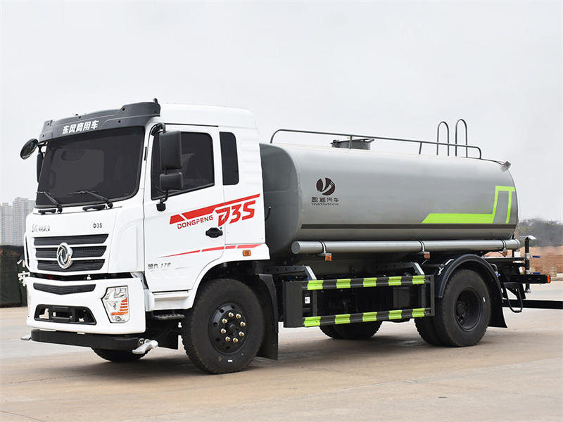 東風12噸灑水車底盤配置: 新款 D3S,發動機玉柴 170 馬力(四缸機),法士特 8 檔變速箱, 9.00R20 鋼絲胎,新款內飾,帶遮陽罩,帶原廠空調,氣囊座椅,遙 控鑰匙,電動玻璃,ABS