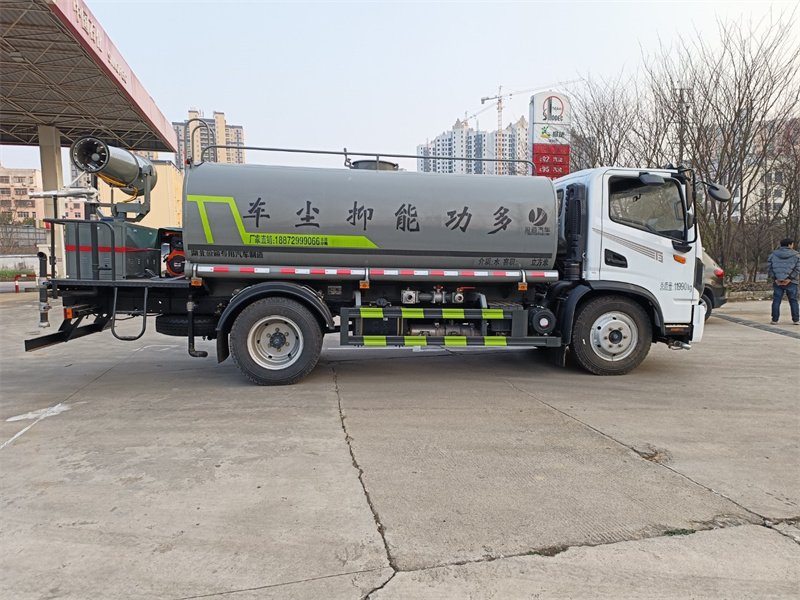 東風新款8-10噸霧炮灑水車標配前噴(鴨嘴)、后沖、后灑、側噴、后置式工作 平臺,平臺上配置綠化水炮(可 360°旋轉,既可以調成柱狀,也可 以調成霧狀,更可以調成直沖狀、大雨、中雨、小雨、毛毛雨),配 備優質大功率專用灑水泵(可自吸自排,可從河里或池塘抽水到罐體), 取力器,雜物過濾網,消防接口,自流球閥系統、取力器、球閥、濾網 均為國家標準產品,主管道加粗,法蘭墊、法蘭盤加厚,大通徑球閥。 整體具備性能優良安全可靠、效率高、流量大、維修方便等特點